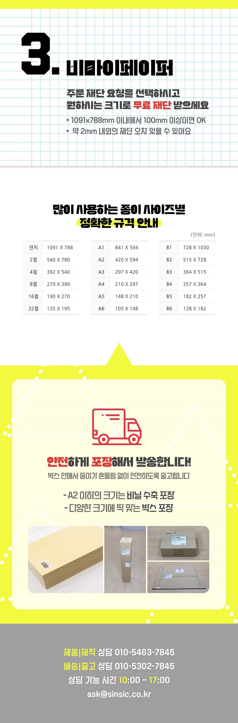 - 전지사이즈 및 1절 등 큰 사이즈의 경우 일부 경동택배로 출고되며, 배송비 5,000원이 추가됩니다.